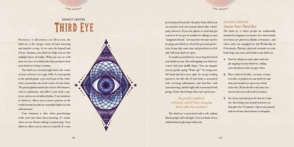Organized into 12 chapters—Winter Solstice, Spring Equinox, Summer Solstice, Autumnal Equinox, plus early and late stages of each of the four seasons — the book features seasonal practices; exercises for the body and for writing and reflection; plant, animal, and mineral medicine; and symbolic explorations of the gifts and challenges that arise with seasonal change. Original illustrations by Kate O’Hara illuminate the symbolic richness of the text, and 28 pop-out oracle cards plus four bound-in pocket pages enhance the invitation for readers to use this interactive guide as an ongoing tool for cultivating the sacred in their own lives.