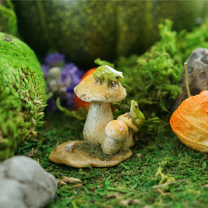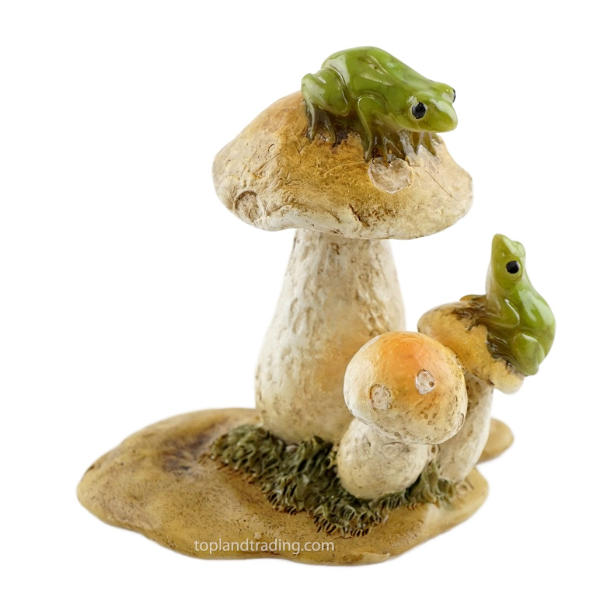 These two cute little frogs are sitting together atop sweet miniature mushroom's. The perfect touch of nature to any home or fairy garden!