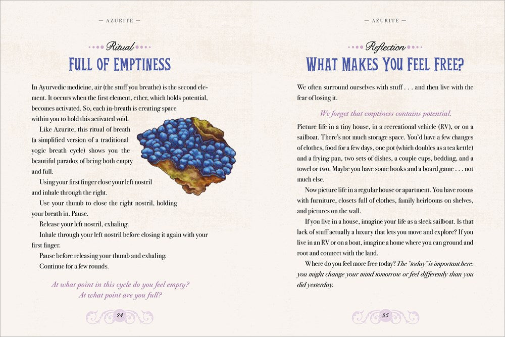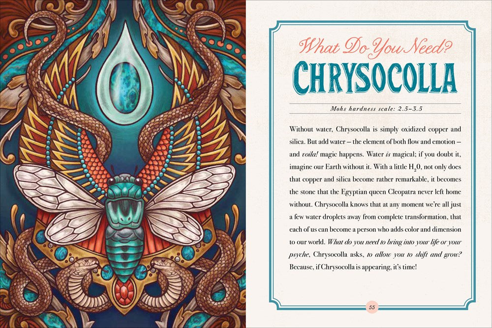 In the ancient world there were three medicine kingdoms: animal, vegetable, and mineral. Following her previous acclaimed volumes on animal (The Illustrated Bestiary) and vegetable (The Illustrated Herbiary), Maia Toll fulfills the call for mineral with The Illustrated Crystallary, exploring the mystical qualities of 36 fascinating crystals and minerals, including amethyst, hematite, mica, smokey quartz, emerald, ruby, and more. Combining bits of ancient wisdom with her own insights, Toll illuminates the aspects and energy of each stone and, through rituals and reflections, the life guidance it might offer contemporary readers. Obsidian’s shiny surface and sharp edges reflect the shadowy corners of the self and serve as the tool for cutting them loose. The sky-like color of earthly turquoise provides balance between opposing forces. Stunning illustrations by Kate O’Hara magnify the symbolism of each crystal and are also featured on 36 bonus cards included in an envelope bound in the back of the book.