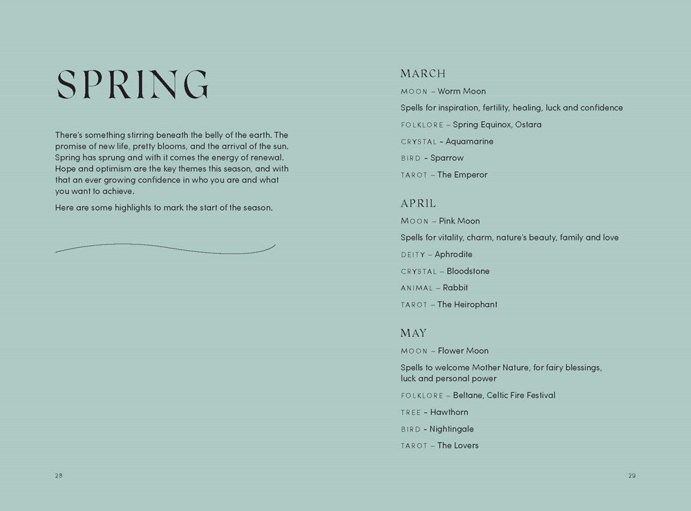 Celebrate spring and summer as a time of renewal with Flora the Roman Goddess of flowers and learn about balance in Litha. As the nights get longer, create beautiful garlands of herbs to ward off evil spirits. Explore the magic of each month, with mystical tips and practical projects, and delve into the annual cycle of a modern mystical year.