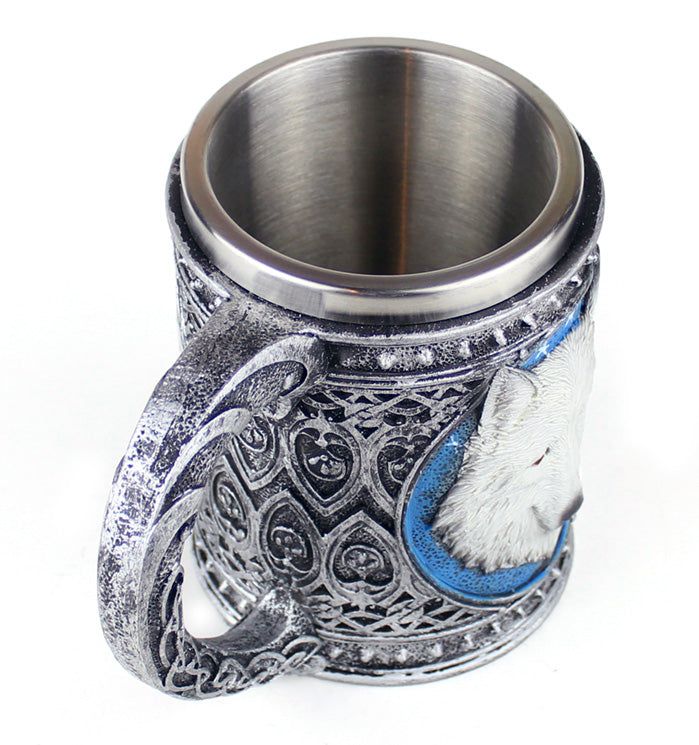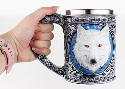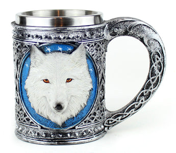 Get in touch with the classic power animal - the majestic wolf! Great for both hot and cold drinks, this impressively large mug features a double-sided motif of a white wolf's head on an icy-blue background. The mug is accented with metallic-coloured Celtic motifs throughout, making for a lovely gift or addition to a nature lover's collection!